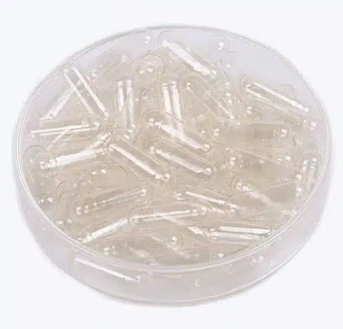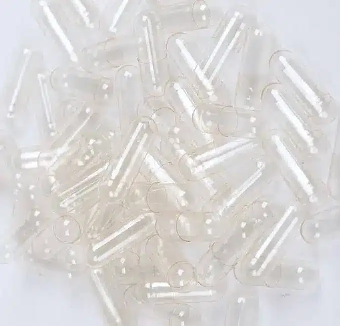 Empty Vegetarian HPMC Capsules. Clear and transparent. Made from plant-based cellulose (HPMC). Size 0# or 00#.