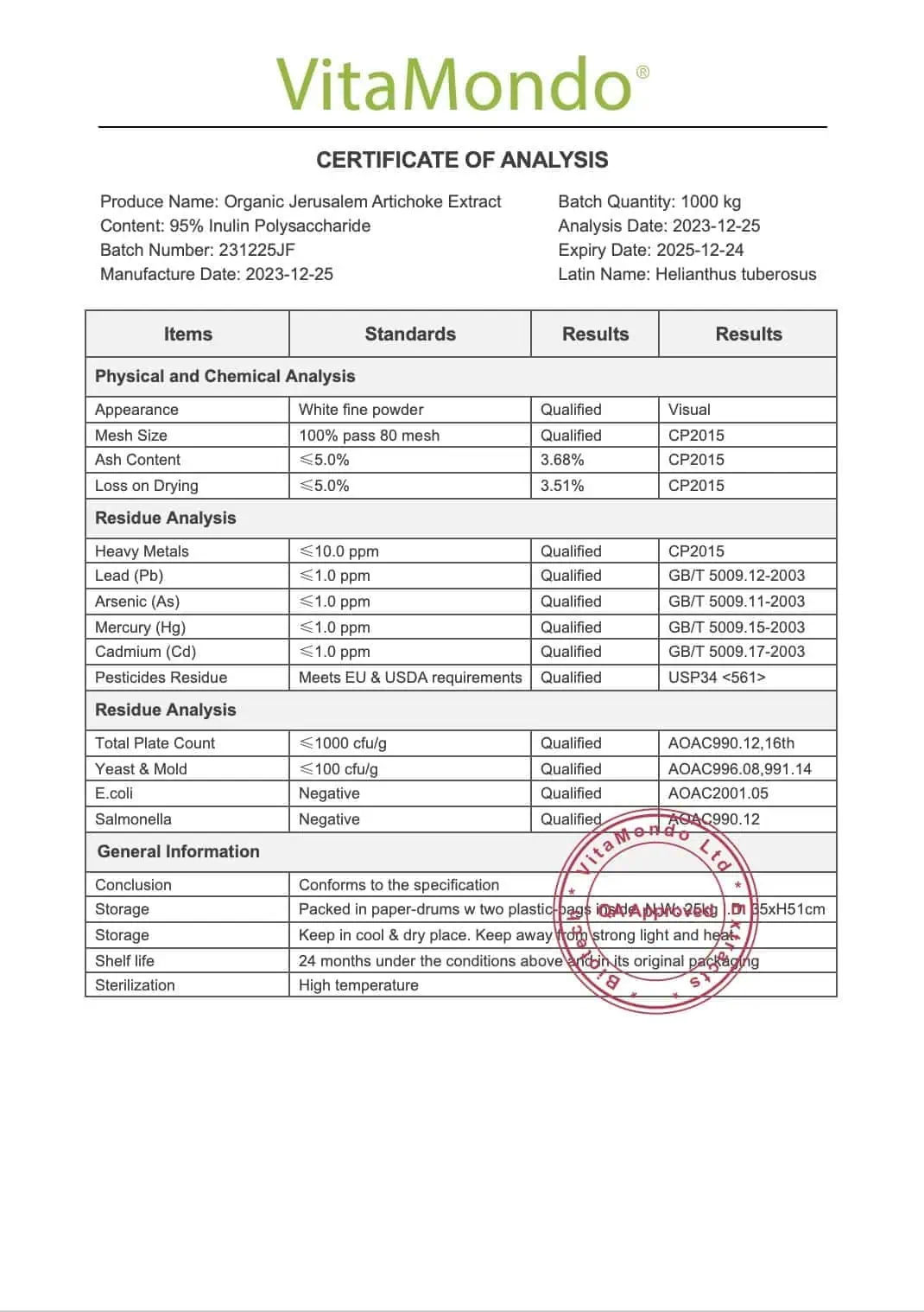 Inulin is generally well tolerated but may cause mild digestive discomfort for some individuals during initial use. Starting with smaller amounts and gradually increasing intake can help minimize this effect. Store in a cool, dry place.