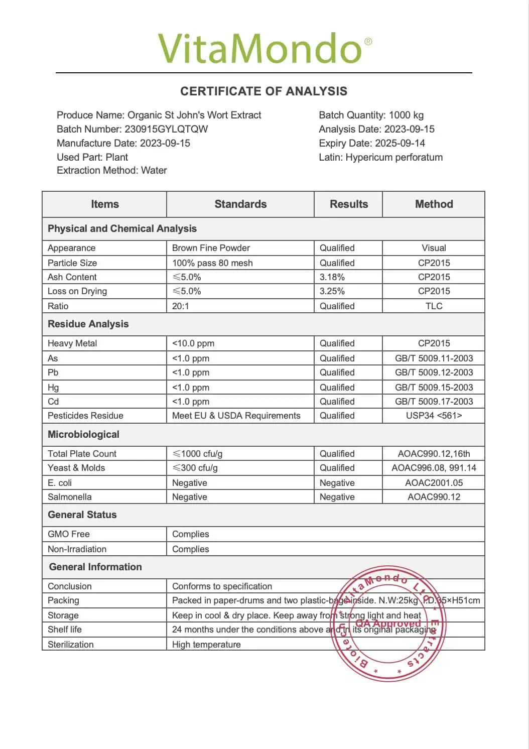 Organic St. John’s Wort Extract (Hypericum perforatum). 20:1 extract.