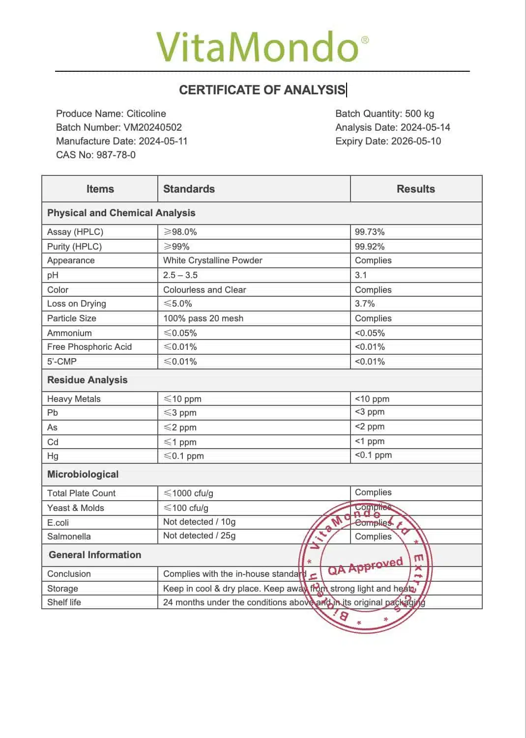 Premium CDP Choline 99% (Citicoline). Pure, free from additives.