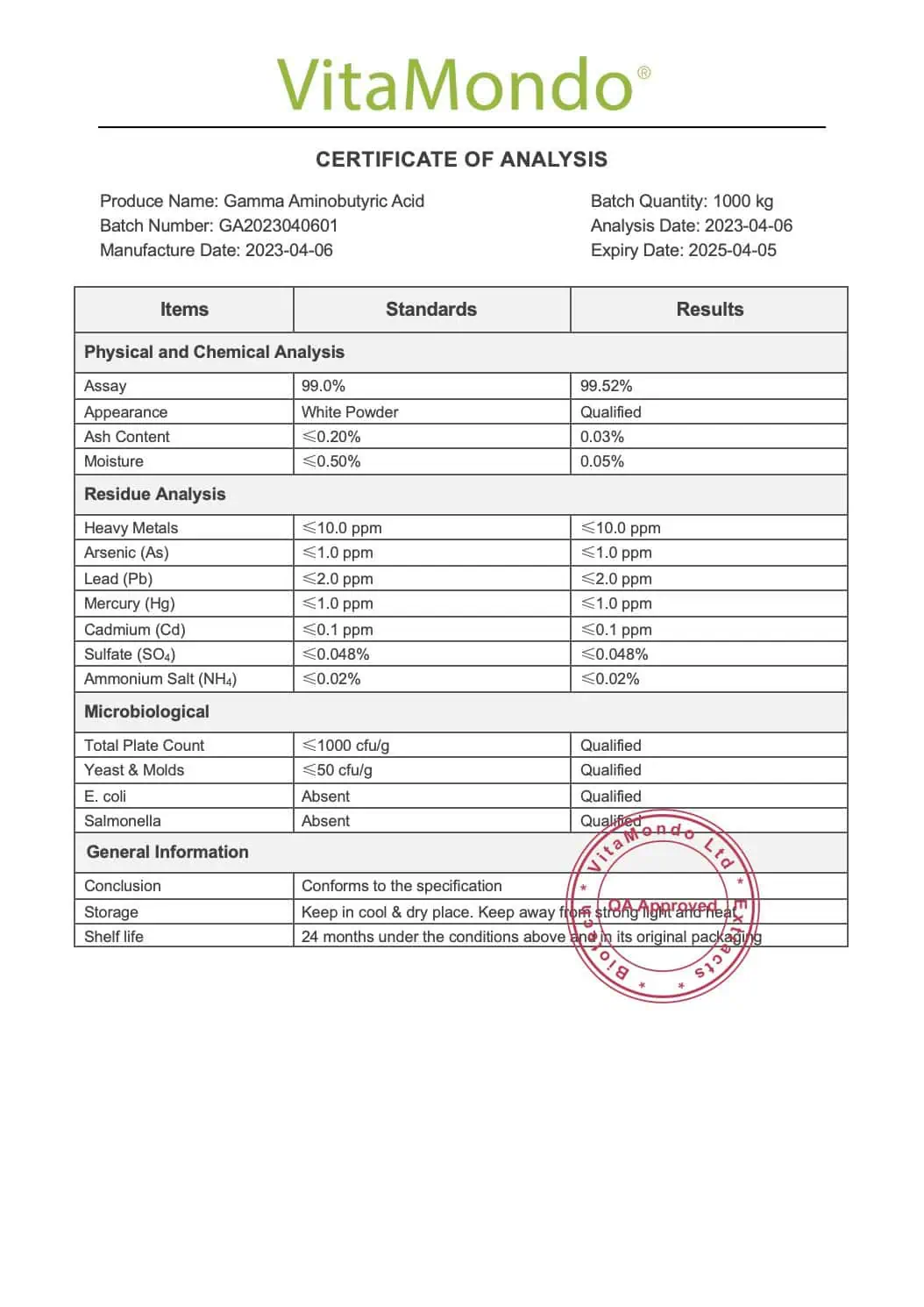 Premium GABA (Gamma Aminobutyric Acid) 99%. No fillers or additives.