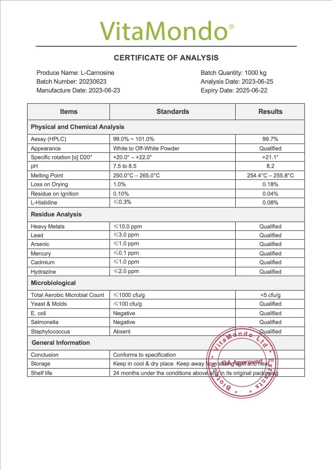 L-Carnosine is generally considered safe and well tolerated, with no major adverse effects reported at typical supplemental doses. However, as with many longevity-related supplements, cycling may be beneficial to prevent adaptation and ensure long-term efficacy. A common approach is to supplement for 8–12 weeks followed by a 2–4 week break. Individuals with pre-existing medical conditions or those taking prescription medications should consult a healthcare professional before starting.