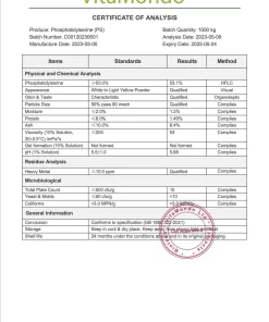 Premium Phosphatidylserine 50% (PS) Powder from vegetarian (soy) source. Contains no fillers.