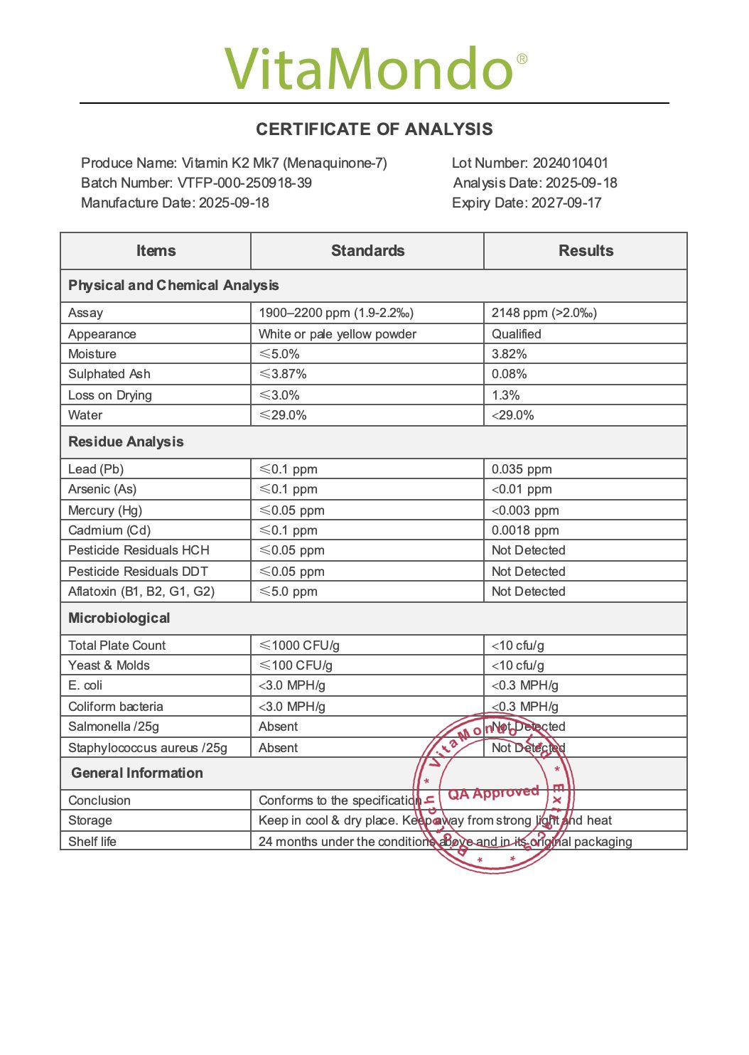 Vitamin K2 Menaquinone-7 (MK7) 0.2%